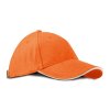 Šesti panelová čepice s kontrastní linkou vlepenou v kšiltu, zapínání na kovovou sponu.
