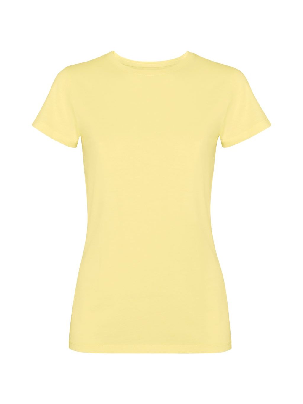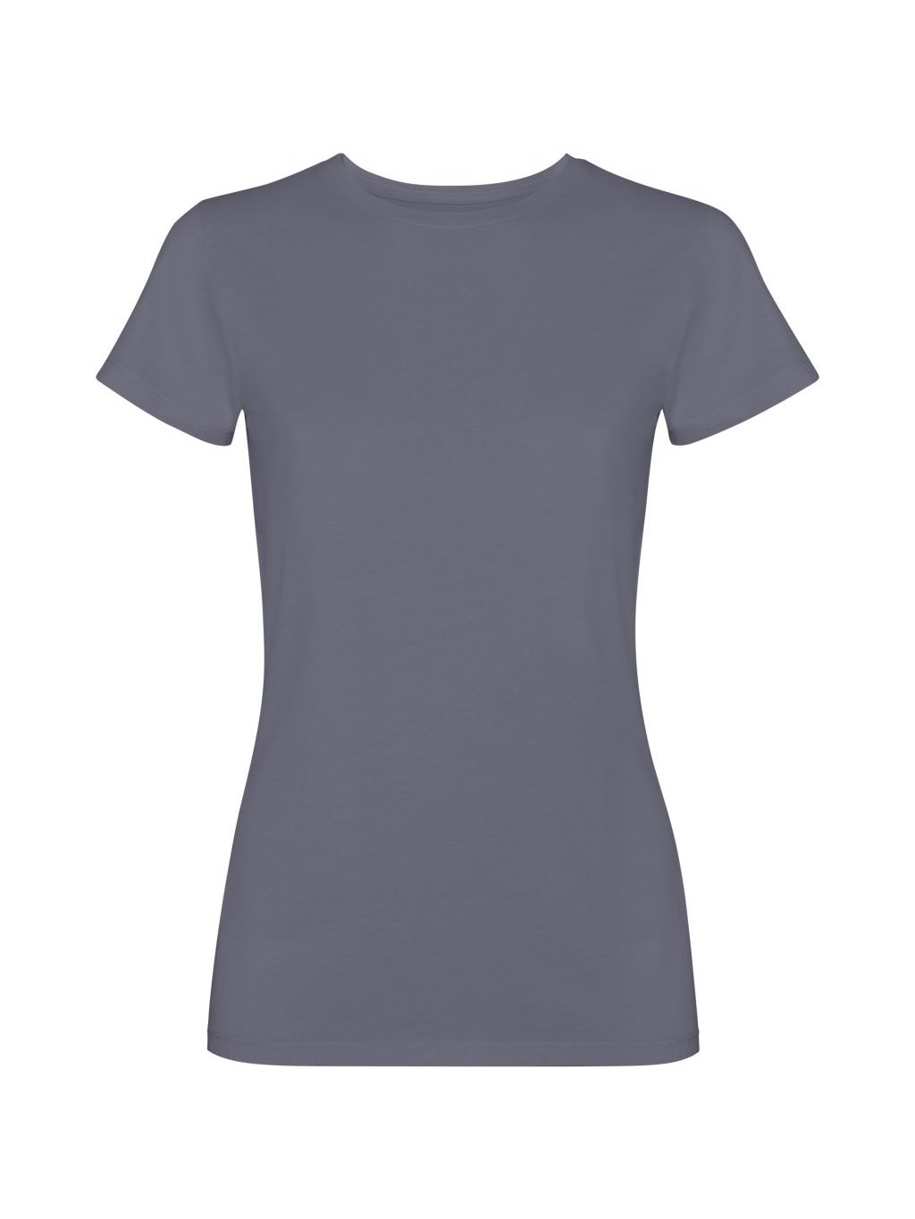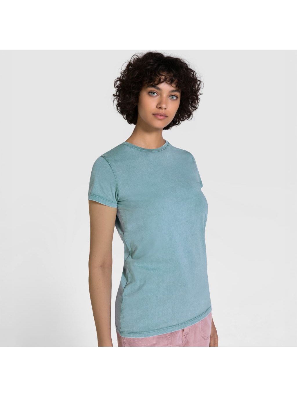 Dámské tričko s krátkým rukávem. Česaná bavlna s vypraným efektem. Kulatý výstřih s žebrováním 1x1. Podlepený výstřih ze stejného materiálu. Dvojité švy na bocích a v podpaží.