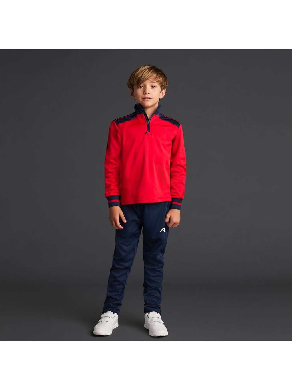 Dětská funkční mikina s vysokým límcem, vyrobená z recyklovaného pique polyesteru s měkkou broušenou podšívkou.