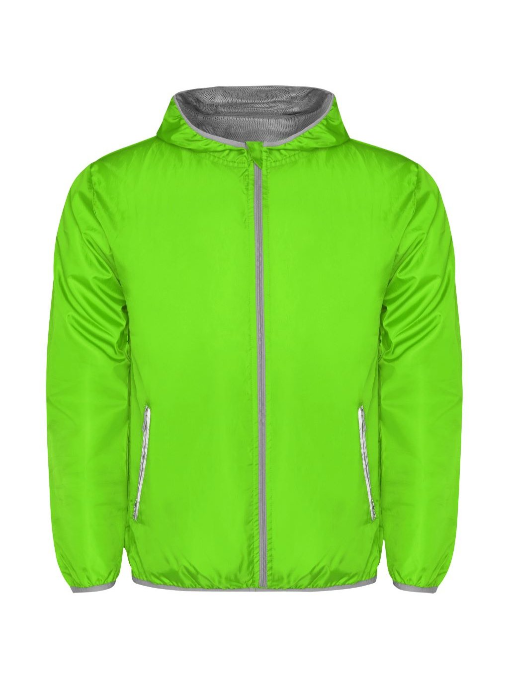 Větrovka s kapucí. Celopropínací zip s ochrannou na bradu v kontrastní barvě. Boční kapsy se zipem a kontrastním lemováním. Zadní klokaní kapsa se zapínáním na suchý zip. Manžety, spodní lem a kapuce s elastickou obrubou v kontrastní barvě. Vnitřní strana kapuce ze síťoviny.