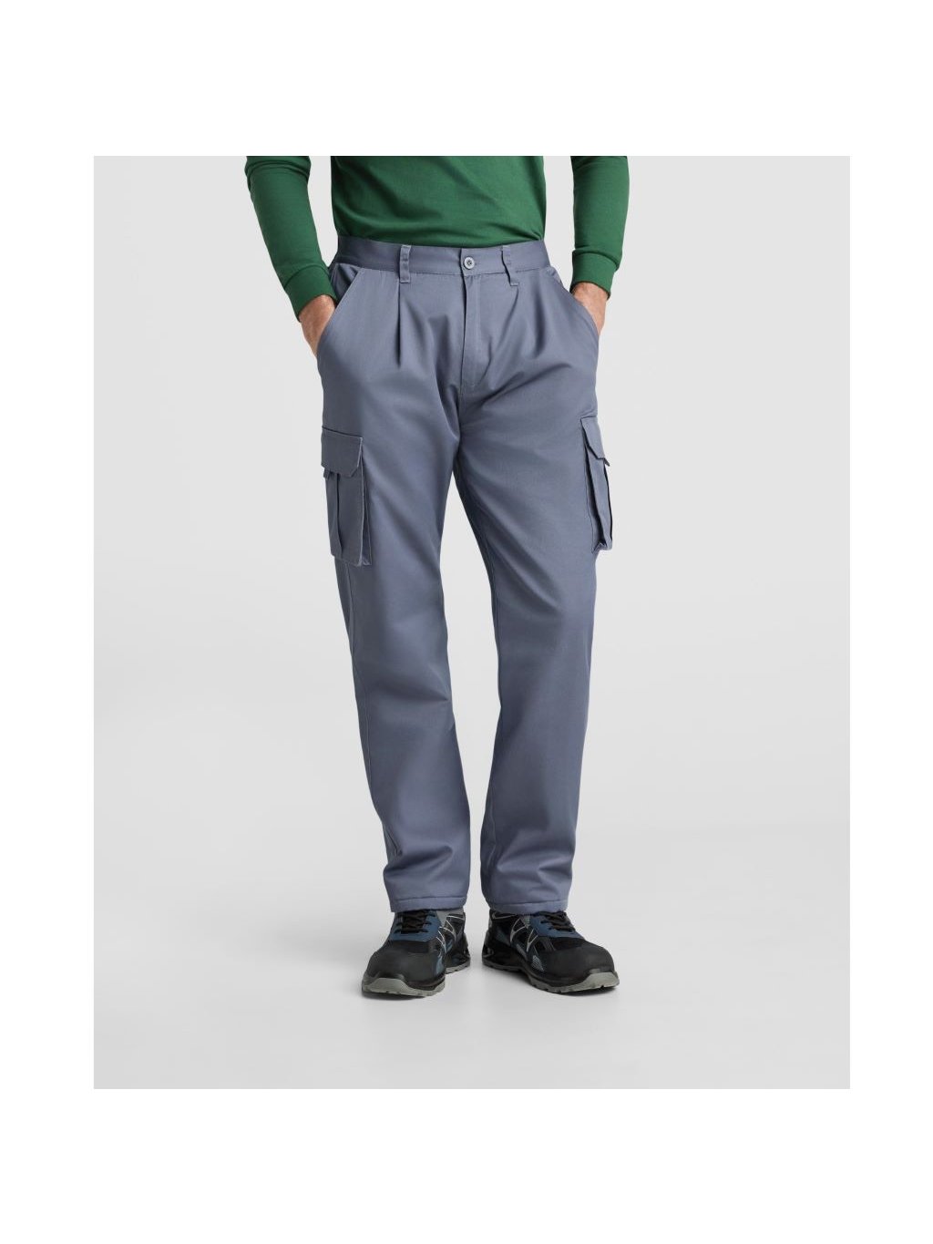 Dlouhé kalhoty s více kapsami. Odolná a elastická tkanina s flísovou podšívkou na vnitřní straně pro zajištění tepelního komfortu. Elastický pás na zádech s poutky na opasek. Dva záhyby pod dvěma předními poutky na opasek. Dvě přední bederní kapsy. Dvě zadní lemované kapsy s klopou a zapínáním na suchý zip. Dvě zadní kapsy s klopou a zapínáním na suchý zip. Vnější štítek Roly WRK.