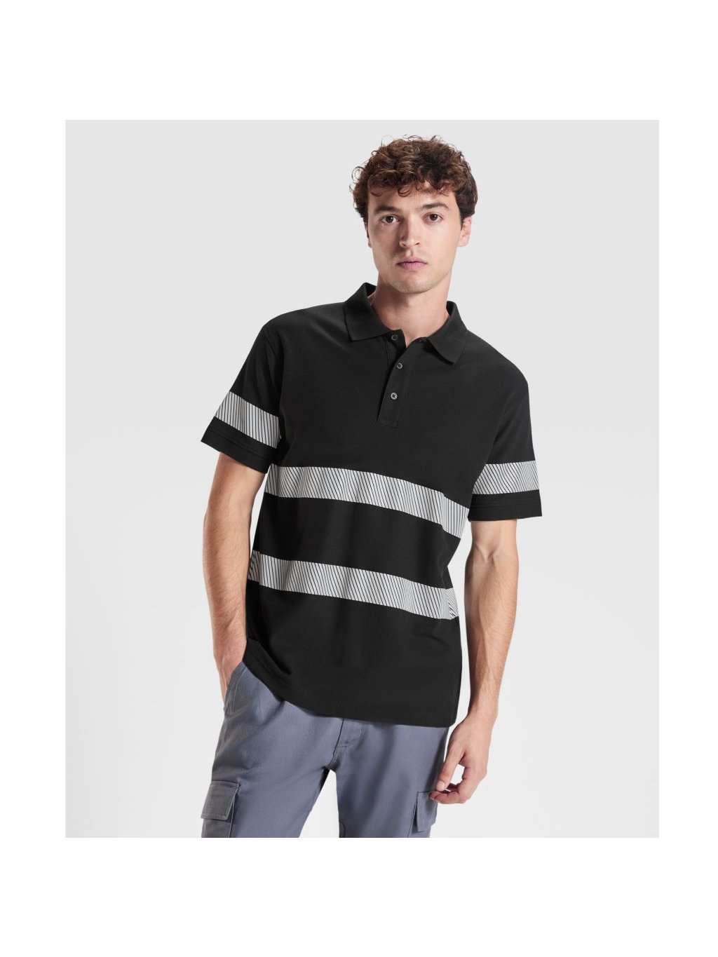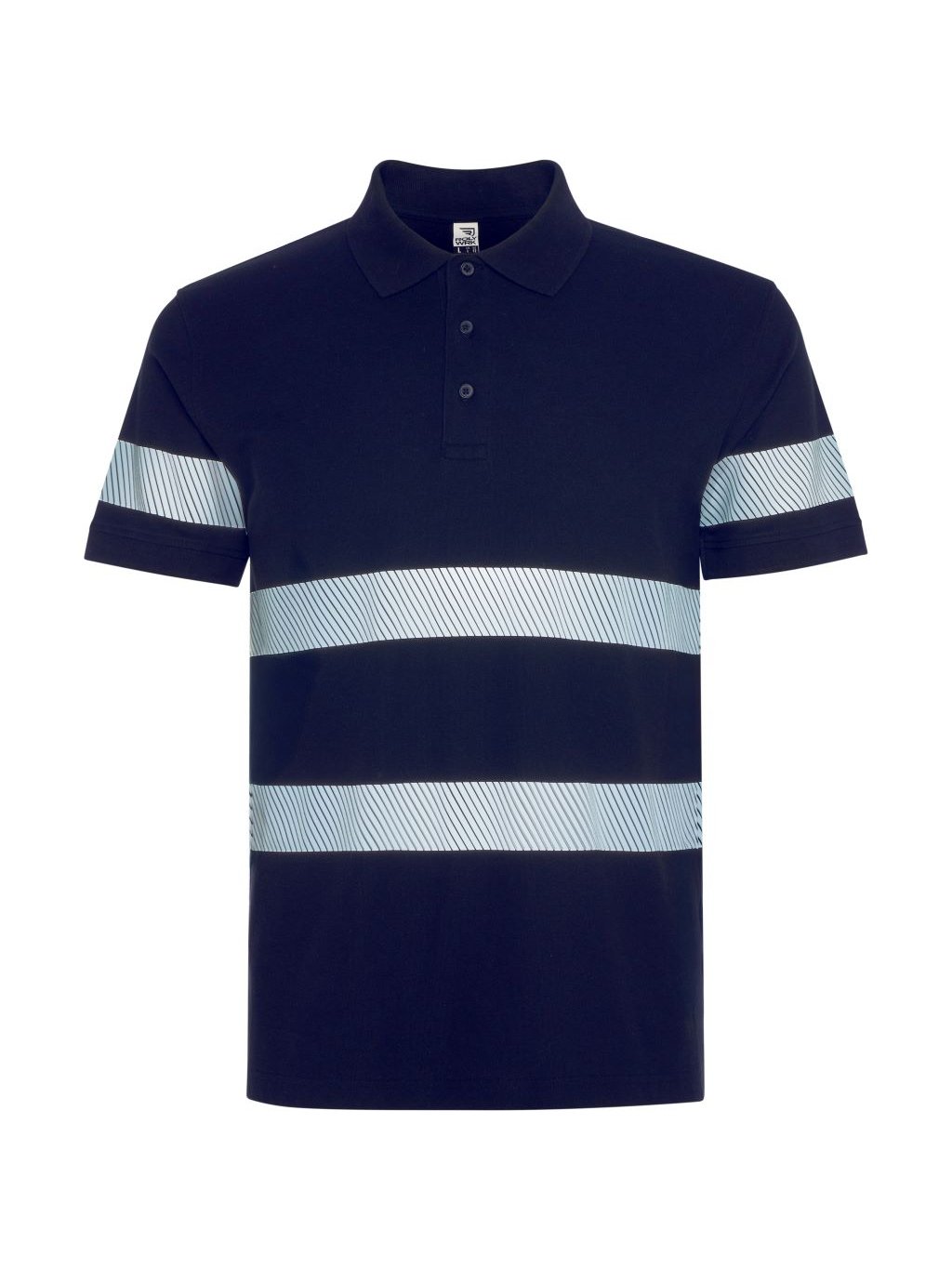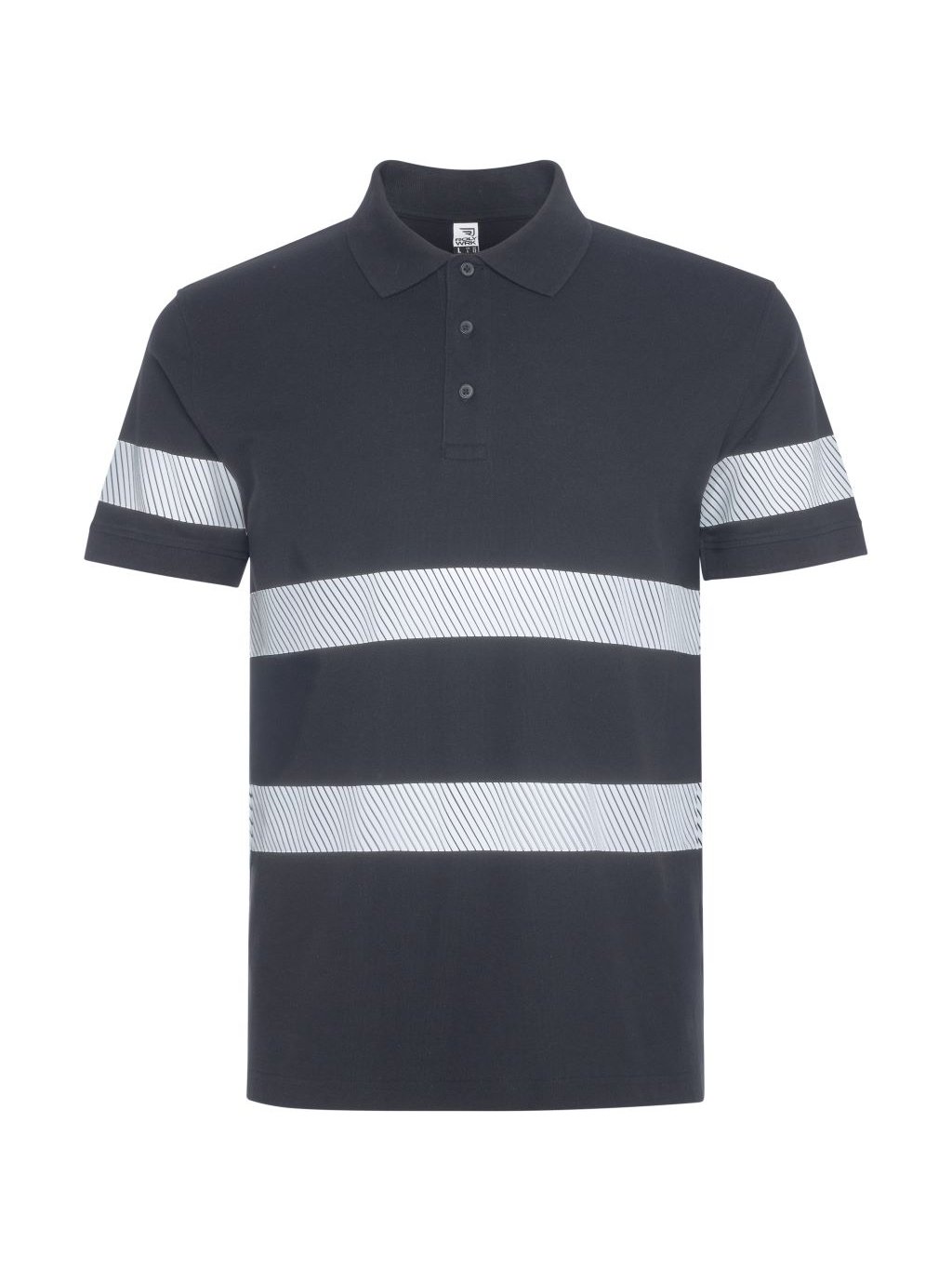 Pique polokošile s krátkým rukávem s úpravou proti žmolkování se zvýšenou viditelností. Dva segmentové reflexní pruhy na hrudi a zádech a jeden na každém rukávu. Zapínání na 3 knoflíky stejné barvy. Límec a manžety s žebrováním 1x1. Podlepený výstřih. Kapsa, volitelná. Vnější štítek Roly WRK.