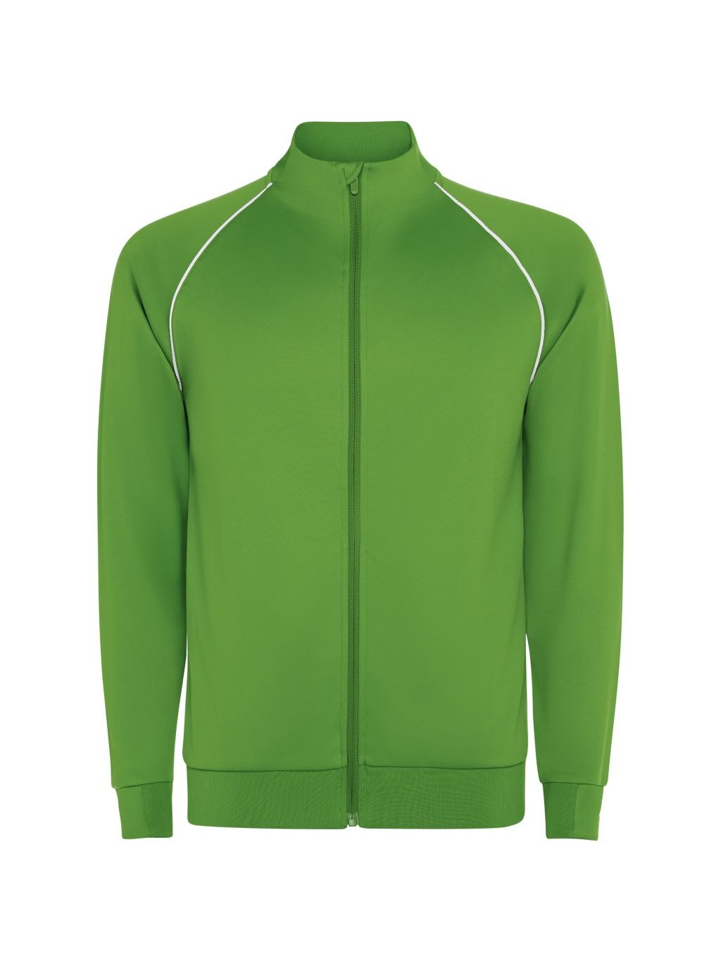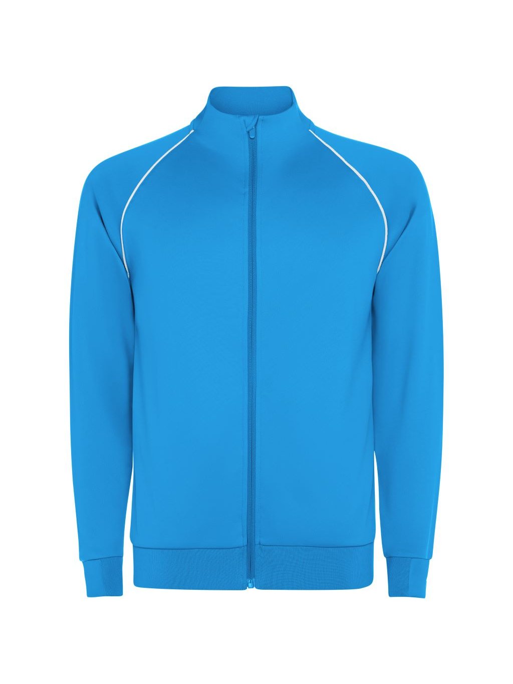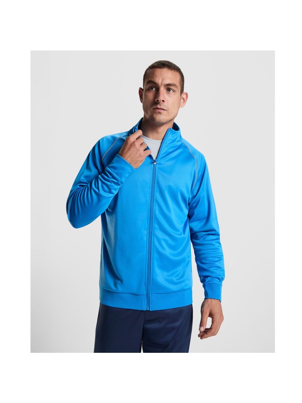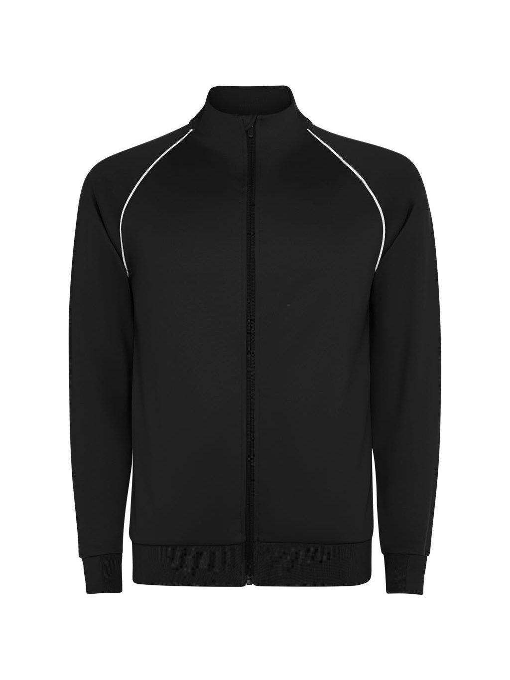 Sportovní mikina s vysokým krkem, raglánovými rukávy a zapínáním na zip na přední straně. Lem, límec a manžety s žebrováním 1x1. Páska u krku z hlavní tkaniny. Zadní díl u krku a manžety z hlavní tkaniny. Reflexní lemování na raglánových švech vpředu a vzadu.