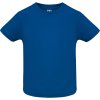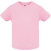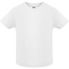 Bavlněné dětské tričko s kulatým průkrčníkem a bočními švy. Velikosti 6, 12 a 18 měsíců se zapínáním na rameni.
