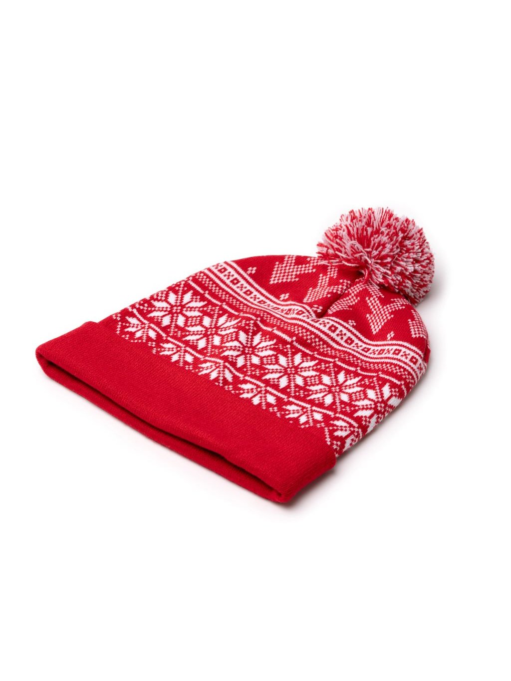 Čepice s vánočním designem vyrobená z akrylu. Design s motivem sněhových vloček je ideální pro zdůraznění sváteční atmosféry. Čepice má na horní straně ozdobnou bambuli a široký přední pásek pro lepší přizpůsobení a pohodlí.