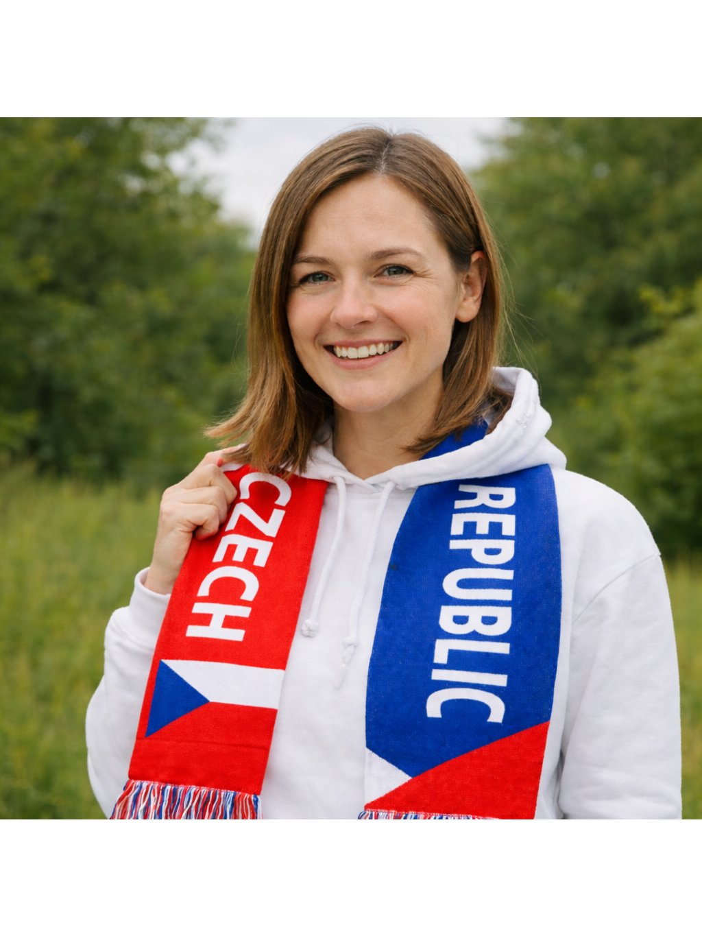 Stylová fanouškovská šála CZECH REPUBLIC v národních barvách je ideálním doplňkem pro sportovní utkání, fandění s přáteli i běžné nošení. Šála je vyrobena z příjemného a hřejivého materiálu, který zajistí komfort i během chladnějších dní. Díky univerzální velikosti se hodí pro ženy i muže a skvěle doplní každý fanouškovský outfit.
